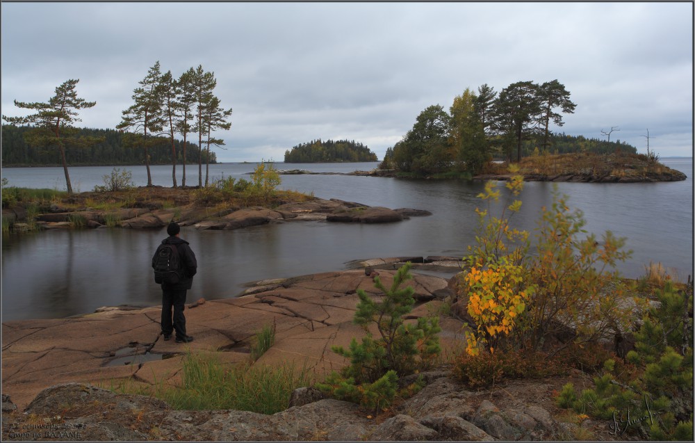 Любуясь красотами Ладожского озера с берега Валаама.