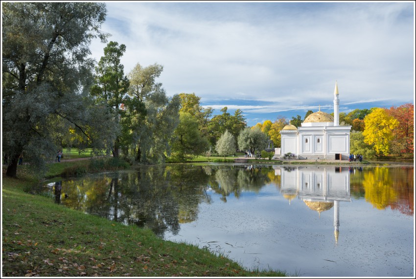 Немного погостив у родственников, я отправился в Санкт-Петербург, хотелось повидать друзей и пообщаться с ними. Хороший всё-таки город, со своей неповторимой атмосферой. В Санкт-Петербурге я пробыл всего три дня, и в один из дней посетил Пушкин с его парками. В этом раз, правда, времени было мало и мы прогулялись лишь по Екатерининскому парку. Если в самом Санкт-Петербурге дыхание осени было не слишком заметно, то в парке она была в самом разгаре.