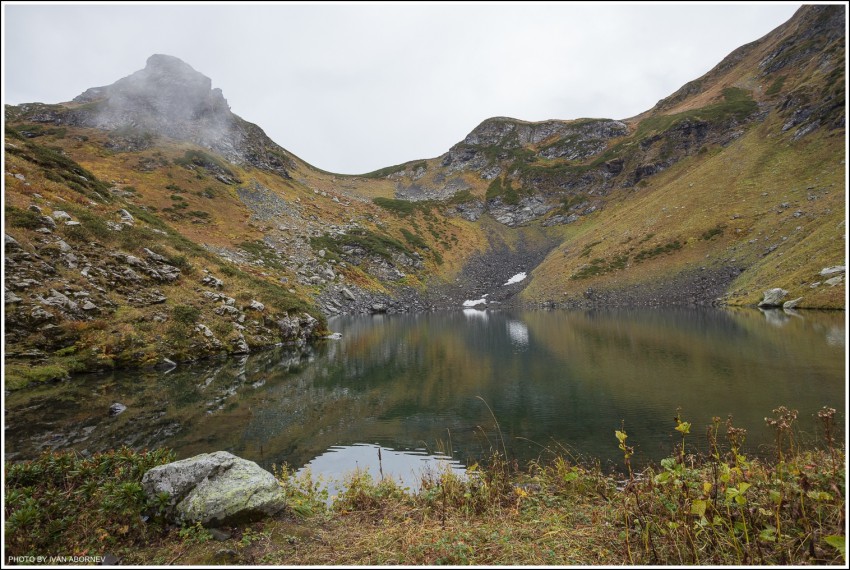 В начале октября мы с ребятами из группы походов выходного дня сходили на озеро Чхо в Абхазии. В первой половине дня погода нас радовала, а после обеда стало пасмурно, пошёл дождь. Но это не помешало нам насладиться прекрасной природой.