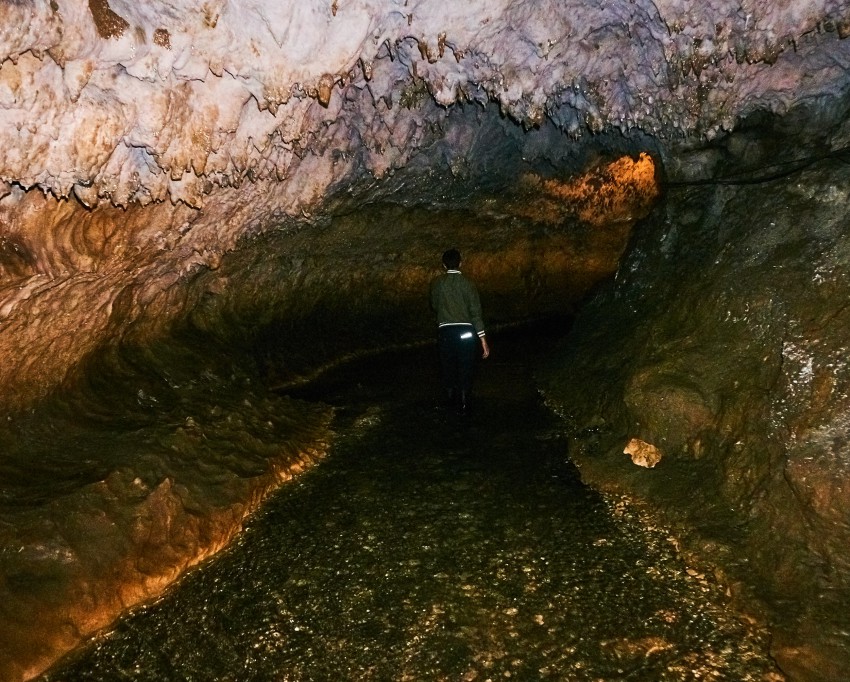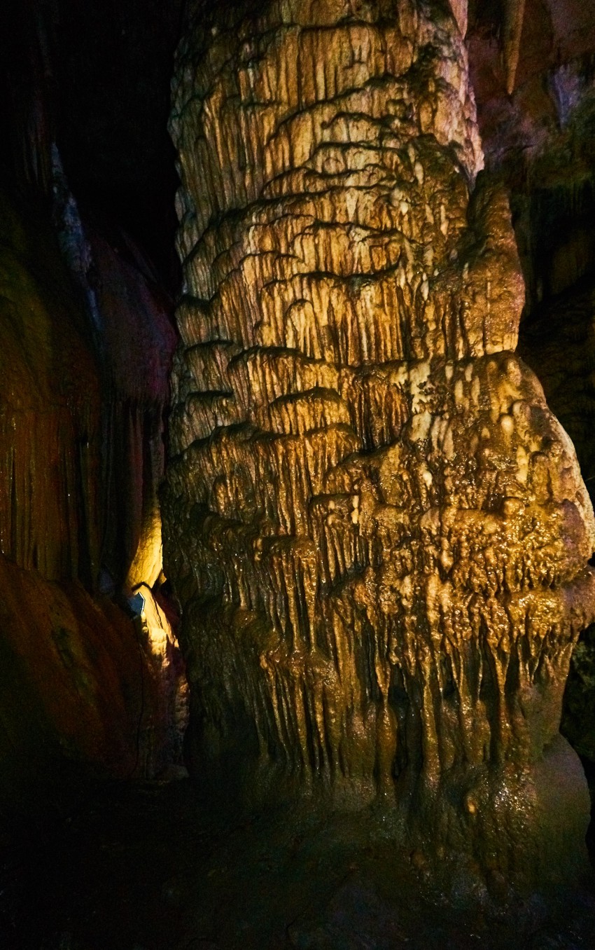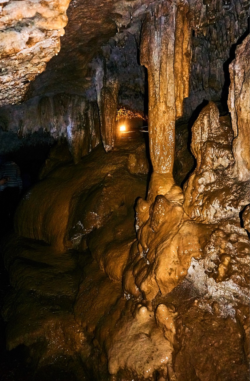 Посетителей водят внутрь пещеры примерно на километр, точнее 950 метров (по другим данным – на 800). Хотя длина пещеры намного больше, и она вроде как до конца не пройдена. В экскурсионной части пещеры три небольших зала, но мы пока идем темными коридорами