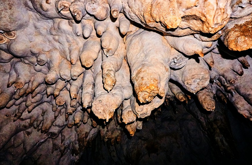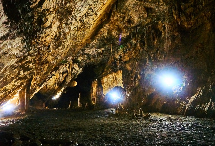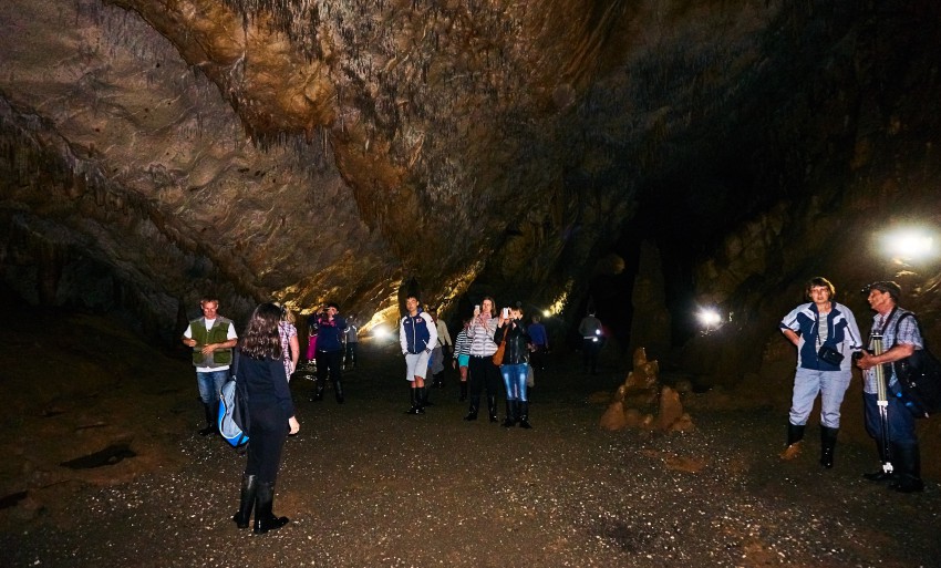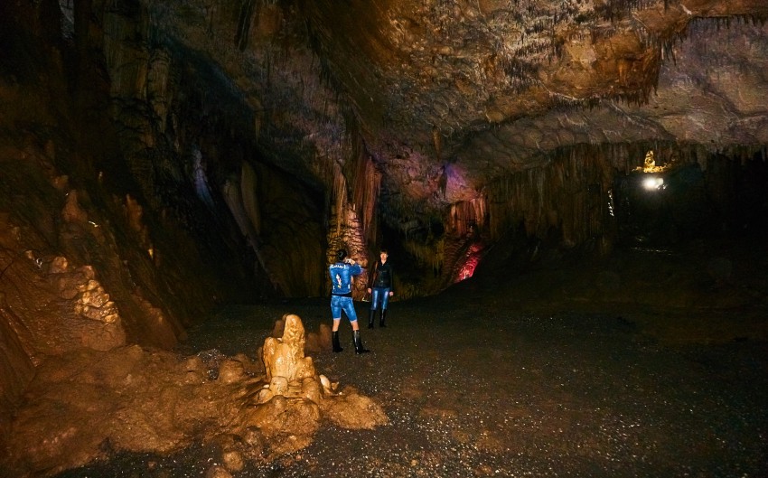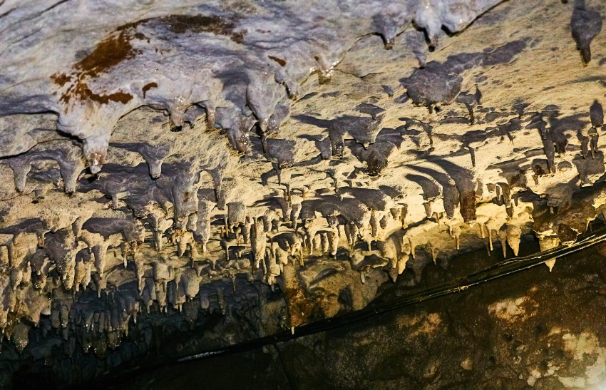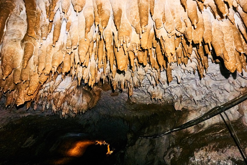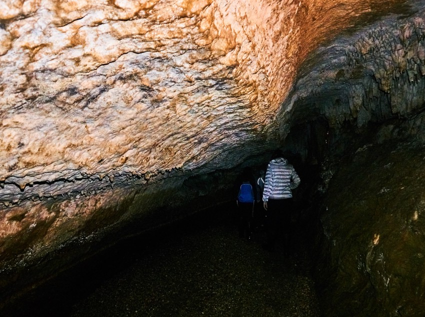 Посетителей водят внутрь пещеры примерно на километр, точнее 950 метров (по другим данным – на 800). Хотя длина пещеры намного больше, и она вроде как до конца не пройдена. В экскурсионной части пещеры три небольших зала, но мы пока идем темными коридорами
