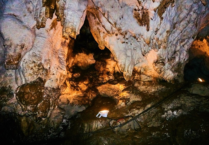 Свет в пещеру проведен, но на момент посещения не работал