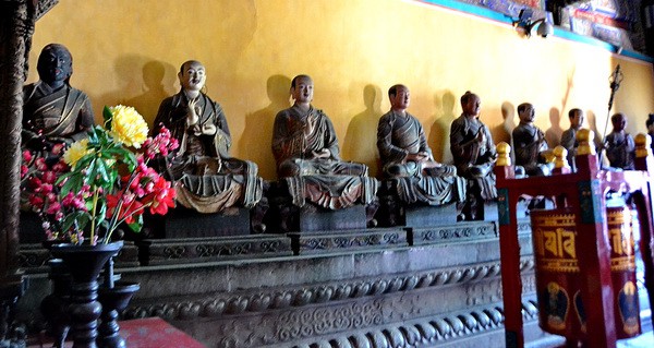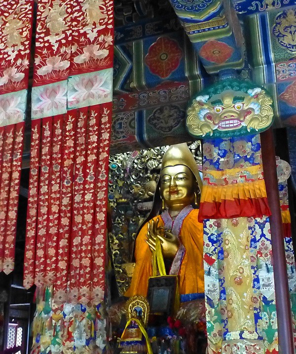 Установлена большая статуя Дже Цонкапа, основателя Гелук. В зале также находится «холм 500 архатов», вырезанный из красного сандала, на котором расположены статуи архатов из 5 металлов (золота, серебра, меди, железа, олова).