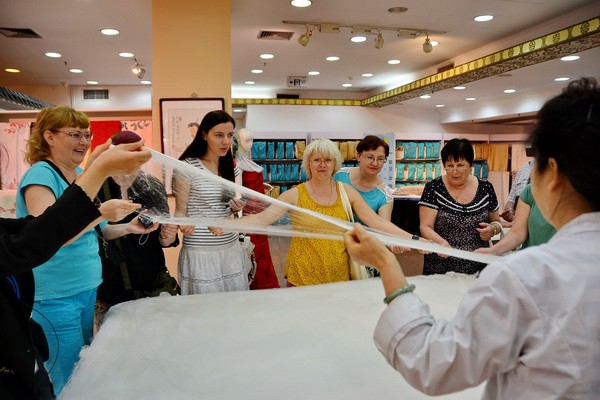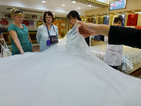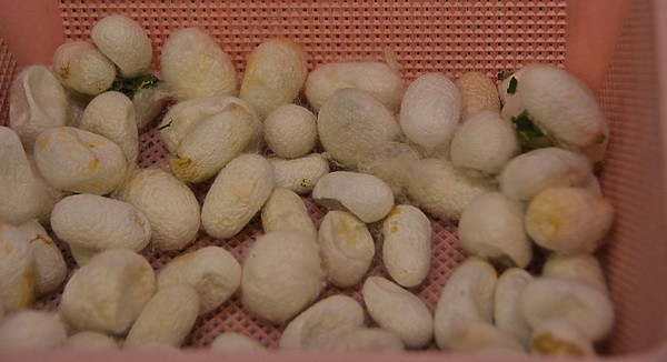 Нам показали весь процесс изготовления шёлка, начиная от гусениц шелкопряда и коконов.