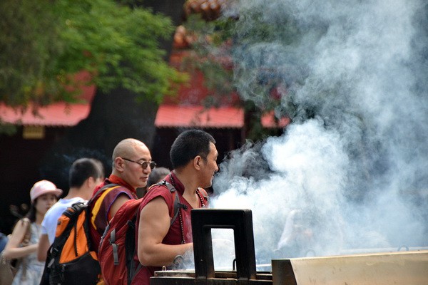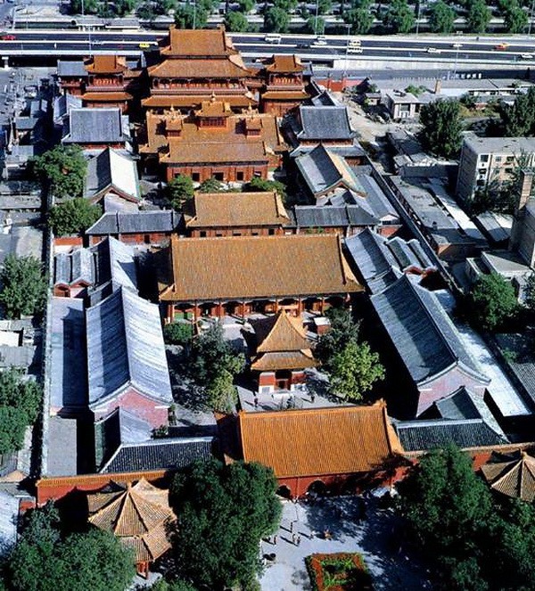 Протяжённость храма 480м. Главные ворота находятся на юге. Вдоль оси расположены 5 залов разделённых дворами: Зал Небесных Царей, Зал Гармонии и Мира, Зал вечной защиты, Зал Дхармачакра и Павильон 10 000 удач.