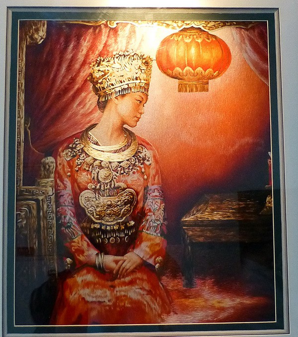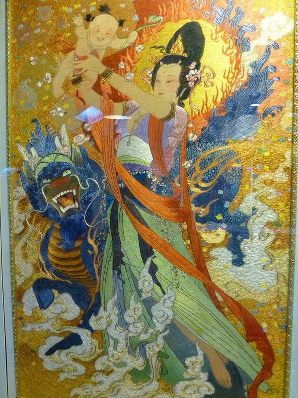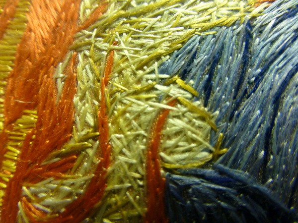При близком рассмотрении оказалось, что это вышивка шёлком ручной работы.