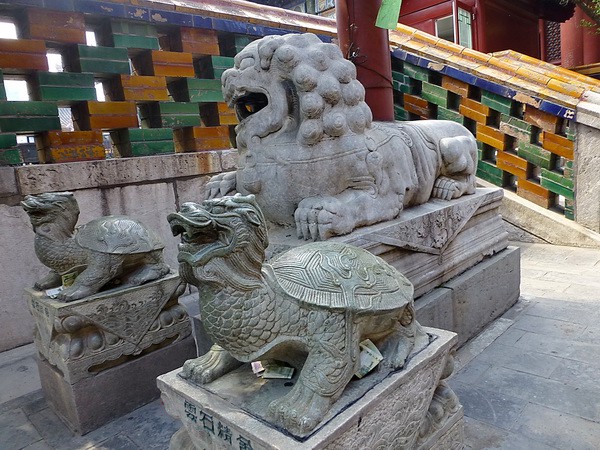 Здесь же находятся статуи — символы богатства, долголетия и благополучия.