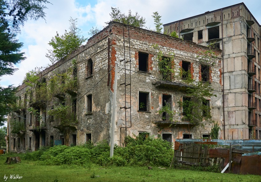 В июне мы посетили Гал и несколько предгорных деревень, а еще раньше удалось побывать на Псху. В этот раз, в июле, целью поездки стал один из самых уделенных горных городов Абхазии – Ткуарчал, ранее известный как Ткварчели. По информации из интернета город представлялся нам в образе постапокалиптического города-призрака, и поездка планировалась как путешествие по заброшенным сталкерским местам северо-восточной части Абхазии. Удалось посмотреть не только сам город, но и проехать километров на пятнадцать дальше, посетив пустые шахтерские поселки, с красивой сталинской архитектурой, наполовину разрушенной временем, и берущей свое природой.