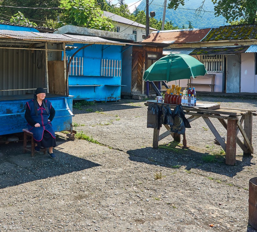 Пьют тут в основном вино, которое сами и делают. А вот, что едят… Впрочем, мы не видели, чтобы в Ткуарчале ели… Зато Ткуарчельцы очень стройные. Хотя, тут есть огороды и коровы, и наверно все не так плохо.