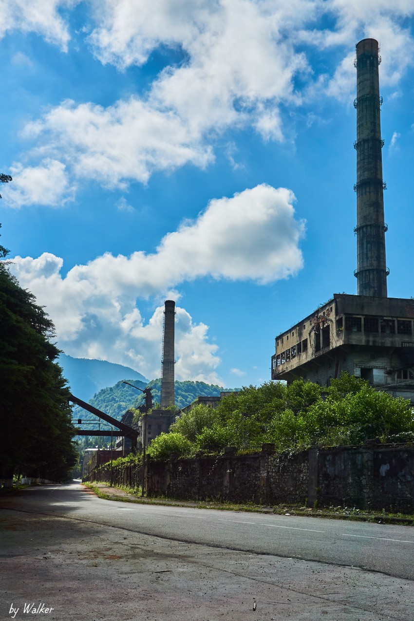 В этом районе находится Ткварчельская ГРЭС, территория которой охраняется, но нам удалось договориться с охранниками, и поснимать там