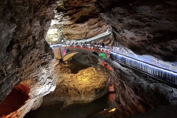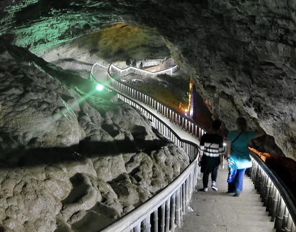 Поднимались мы на скалы (см. здесь), спускались в ущелье, скользили по водной глади на лодке (см.здесь), и вот, настала очередь спустится в недра.