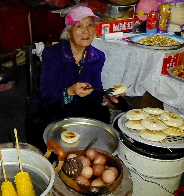 Мы попробовали только что испечённые нежные и чуть сладковатые лепёшки из пуэрарии, которые нам любезно предложила эта китаянка.