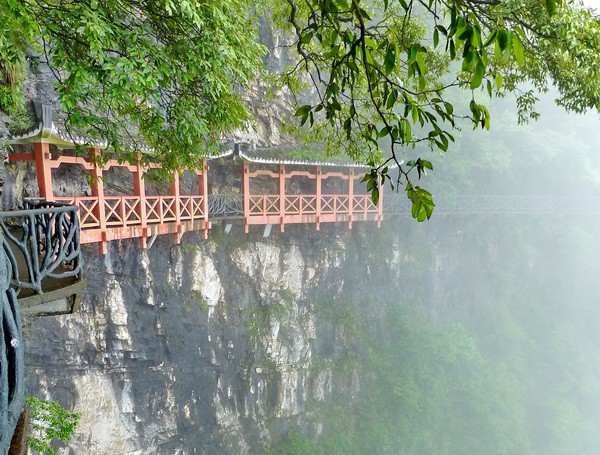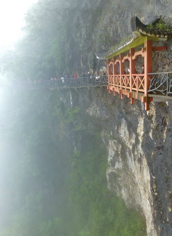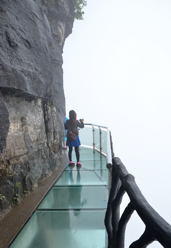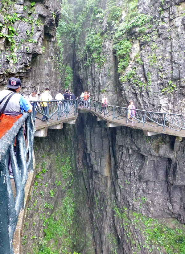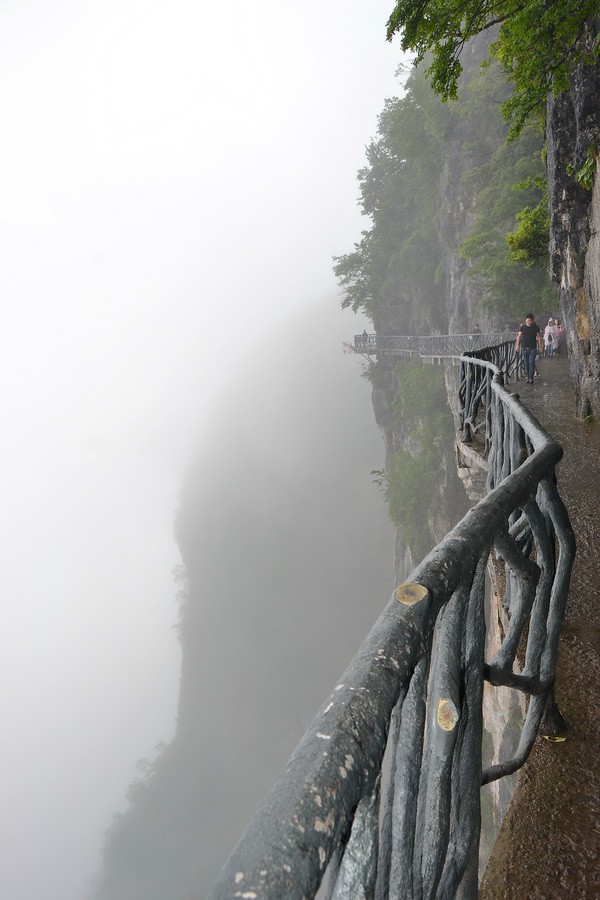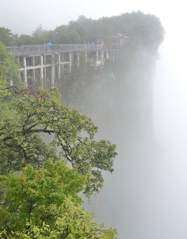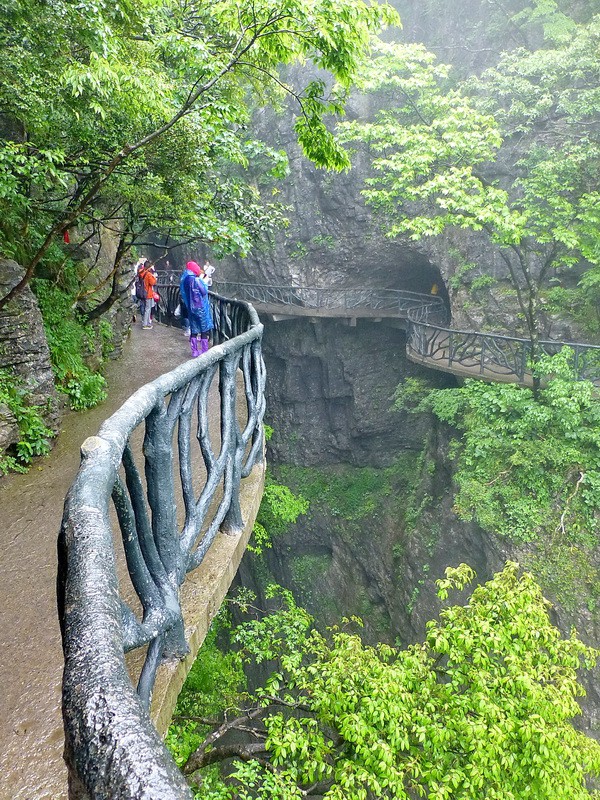 Вскоре стеклянная тропа закончилась. И мы зашагали по бетонным тропинкам, лепившимся прямо на краю пропасти среди причудливых реликтовых деревьев.