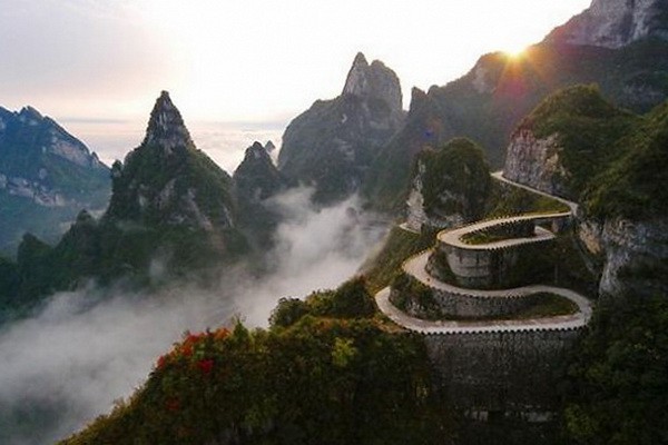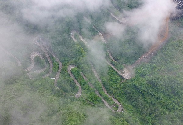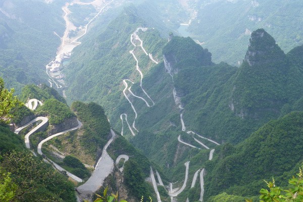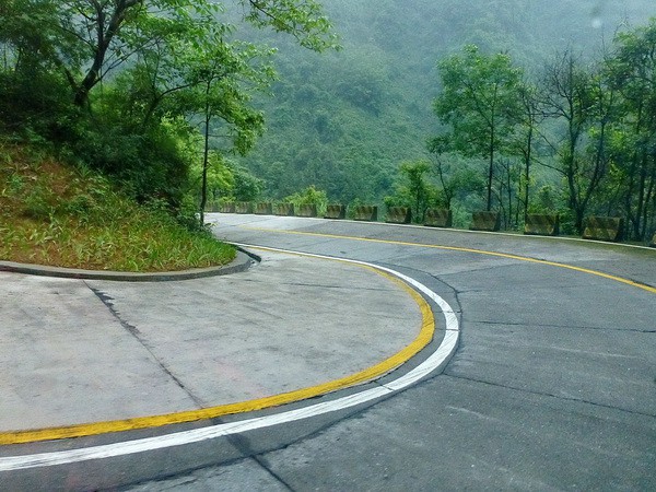 Спускались с горы на автобусе по дороге Тунтянь с 99 поворотами.