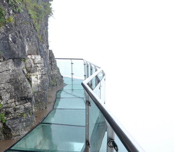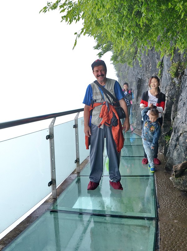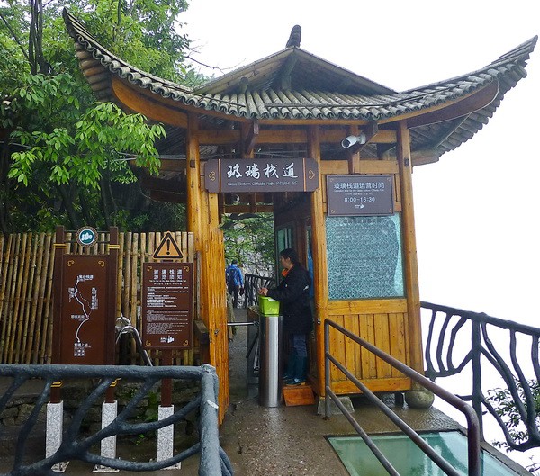 за которым оказалась стеклянная тропа. В киоске купили билетик за 5 юаней, нам выдали тапочки и мы пошли по стеклянному полу.