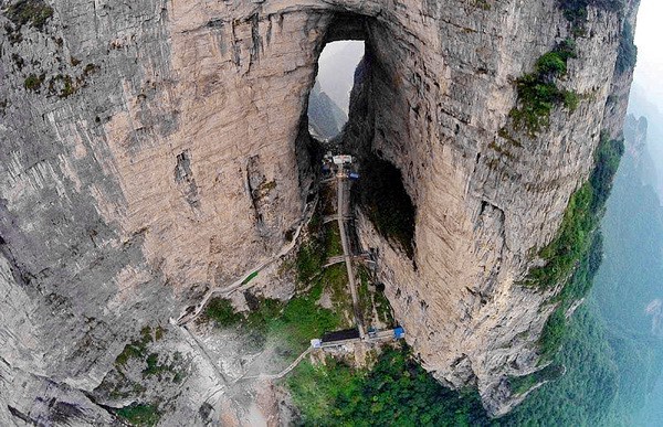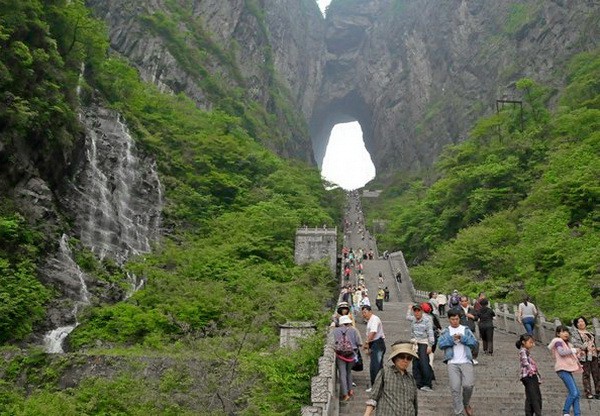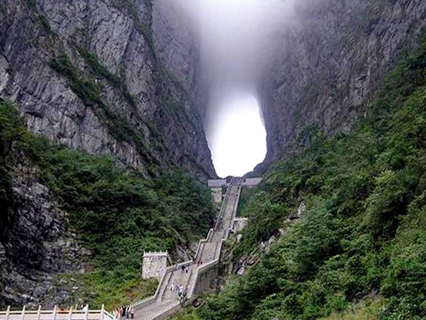 Пещера образовалось в 263 году, когда внезапно большой кусок горы просто отвалился, создав огромную полость высотой 131,5 м, шириной 57 м в самом широком месте и длиной 60 м. Окутанные облаками, «Небесные ворота» действительно очень впечатляют: кажется, что, пройдя через них, вы действительно окажитесь на небесах.