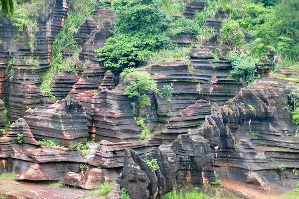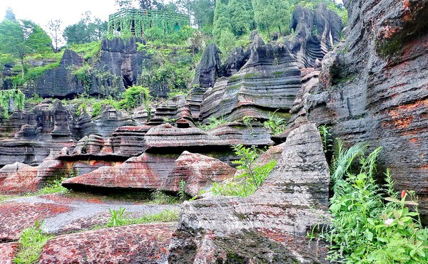 Давным давно в эти места прилетел красный дракон. Гуляя среди гор он увидел девушку необычайной красоты. Она сажала рис. Дракон предложил ей руку и сердце. В ответ он услышал, что девушка уже помолвлена с парнем из соседней деревни. В печали дракон улетел в горы, где так долго тосковал о красавице, что превратился в камень. Так, по народной легенде образовалось это волшебное место.