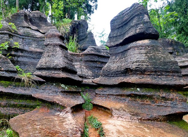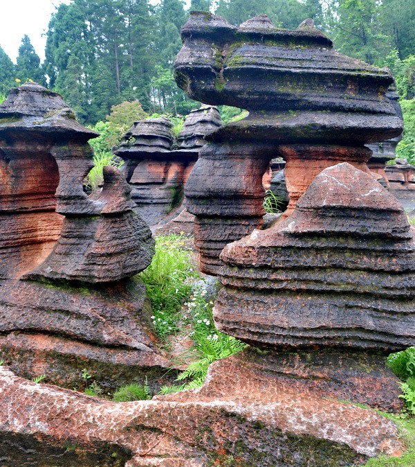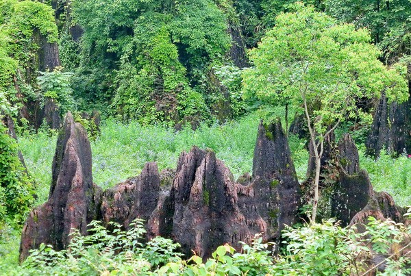 Почти о каждом камне есть легенда. Мы посетили «Красный замок», увидели «Влюблённых», прошли мимо «Армии солдат», посмотрели на «Восемь духов», прогулялись вокруг «Каменной пагоды» и, наконец, добрались до «Расцветающего лотоса».