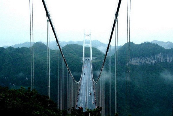 Дорога бежала между живописных зелёных гор, то взбираясь на вершину хребета, то спускаясь на дно ущелья. Снова мы удивлялись мастерству китайцев, которые смогли построить шоссе, сохранив природу.