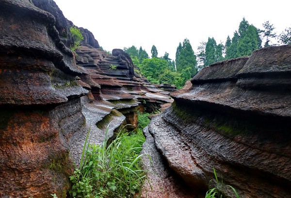 Мы приехали сюда в дождливую погоду, поэтому цвет скал не соответствовал названию парка. При солнце парк выглядит по другому. Только в сухих местах камни остаются красными.