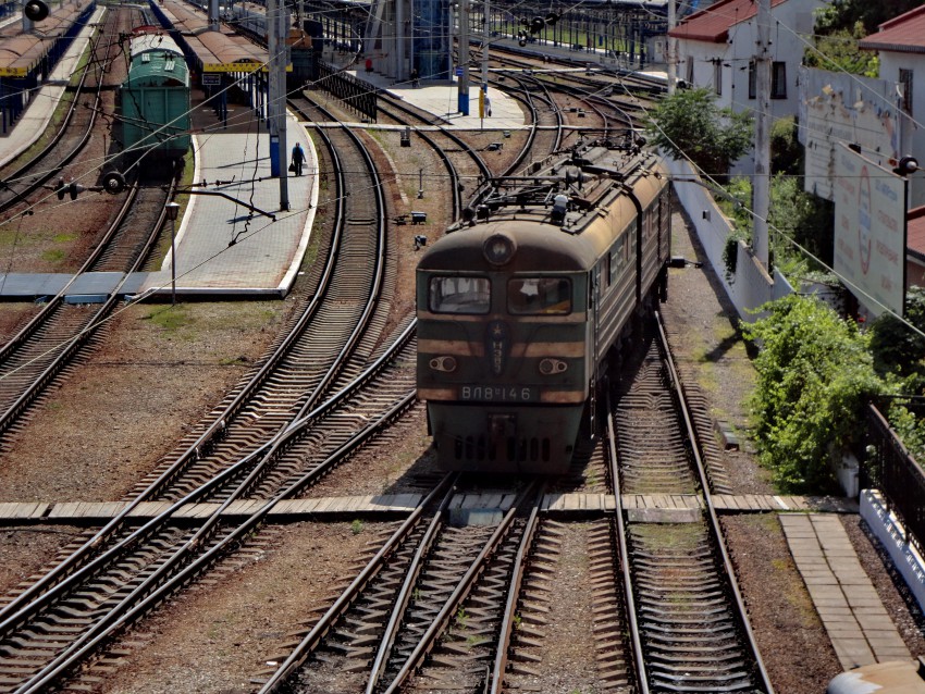 На самом деле в Абхазии до недавнего времени было два таких древних рабочих электровоза — ВЛ8-914 и ВЛ8-1162, но после того как 914йпоставили на кришу попал в аварию, на ходу остался только 1162, его то мне и хотелось выловить. Этот электровоз частенько таскает грузы в сторону Веселого, так что вполне логично искать его на железной дороге.