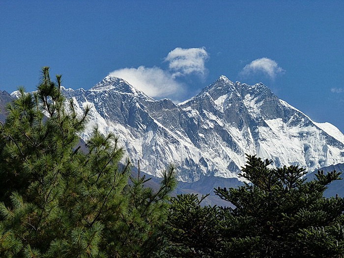 Добравшись до Намче Базара, там переночевали и утром начали подъём на смотровую площадку. Не терпелось увидеть хотя бы издали знаменитые вершины, одно упоминание которых жжёт сердце и ласкает слух — Нуптзе, Лхотзе, Эверест. Ноги сами бегут вверх. По широким ступеням поднимаемся из селения и через сосновую рощу вскоре выходим на обширную поляну. Оглядываемся и сердце замирает от счастья — горы справа, горы слева, сверху и снизу. Близко и далеко. Они везде. Они вокруг. Они возвышаются над землёй словно великаны, устремляя свои головы в бездонную синеву неба. На переднем плане памятник шерпу Норгею Тенцингу, который вместе с новозеландцем Хиллари в 1953 году первыми взошли и живыми спустились с высочайшей вершины мира.
