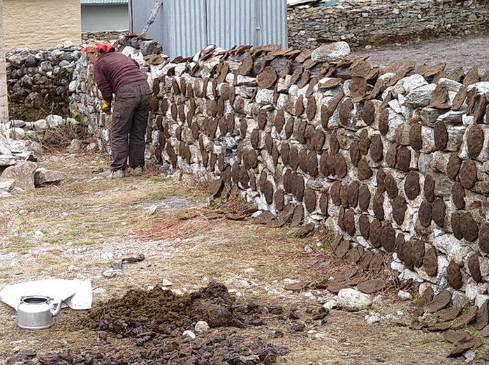 Одни местные жители делают лепёшки из навоза яка и сушат их на каменных заборах,