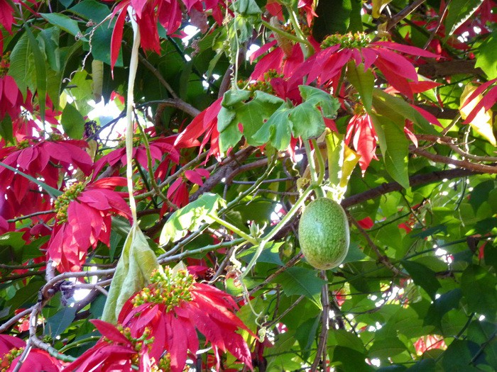 Радует взор огромные деревья пуансетии — рождественской звезды.