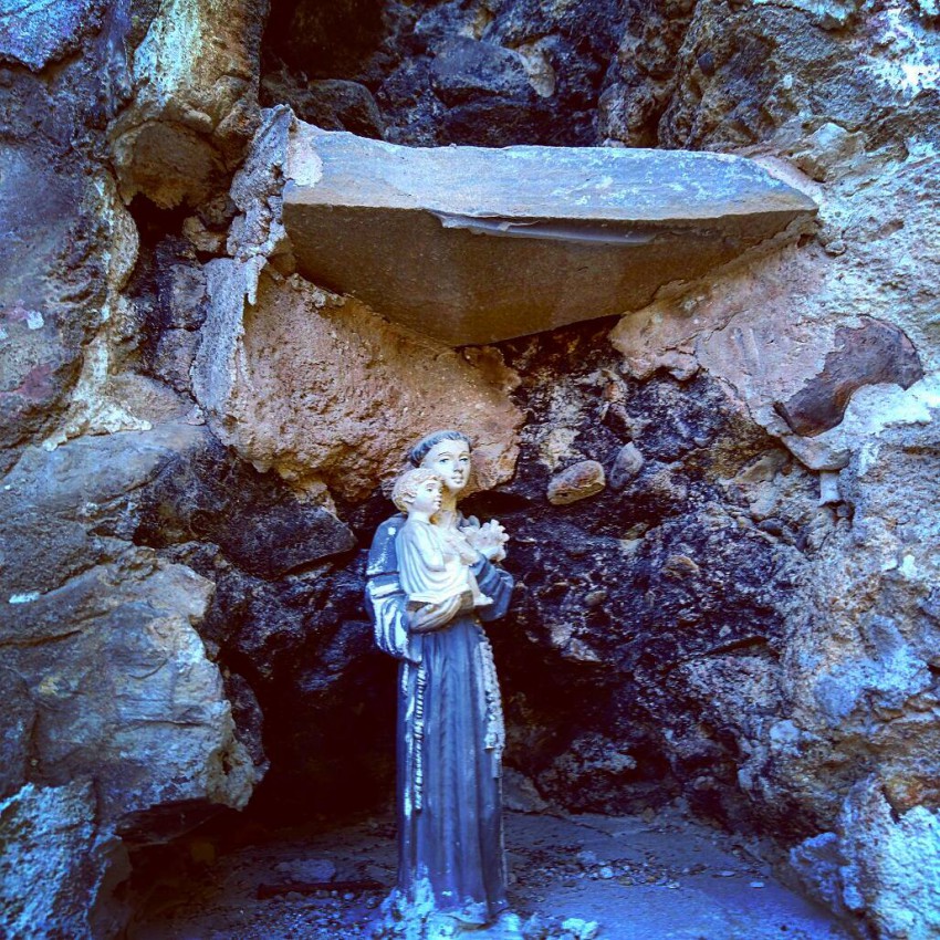 глиняные скульптуры святых, защитников и покровителей домов, цветы, растущие прямо из стен,