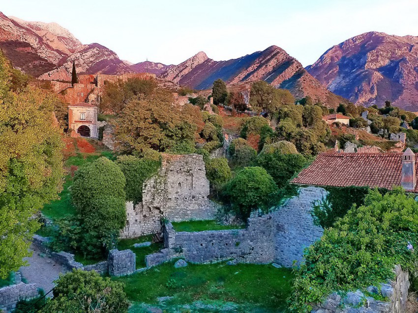 В Кафедральном соборе св.Георгия (XI век) короновали правителей древнего южнославянского государства Диоклетия. От собора осталась только часть фресок, которые защищают от дождя деревянные ставни.