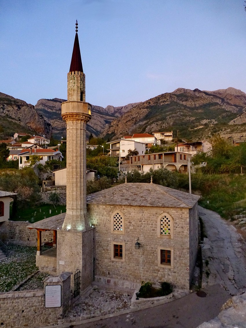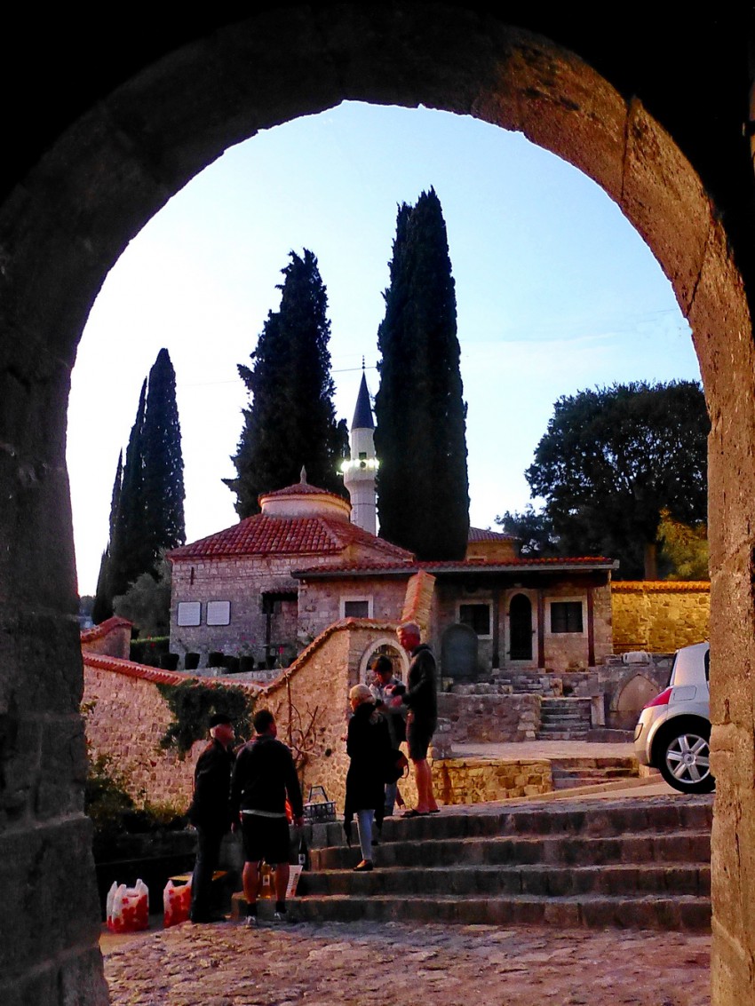 Перед входом в город-музей находится мечеть Омербашича с минаретом и гробницей Дервиш-Хачана XVII века