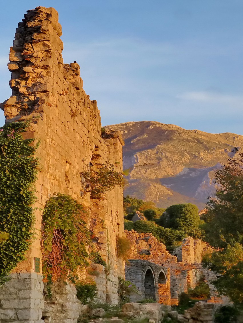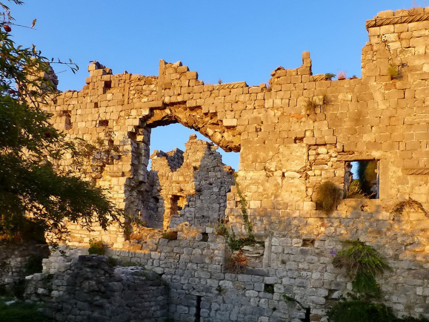 Солнце опускается к горизонту, его тёплые лучи мягко скользят по руинам. В это время начинают своии звонкие песни птицы. Мы замираем, очарованные закатом в Старом городе.