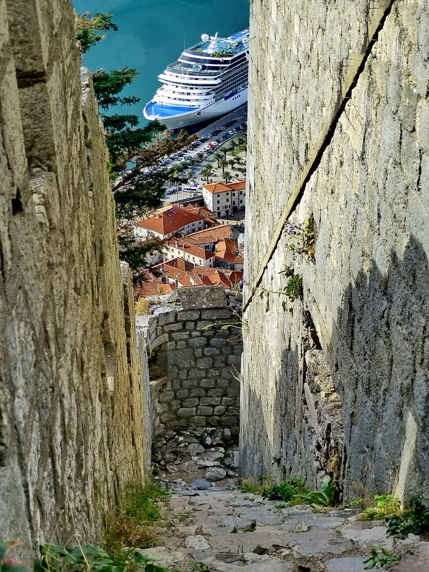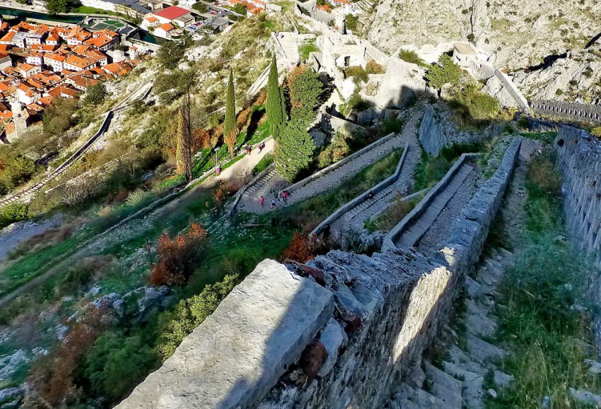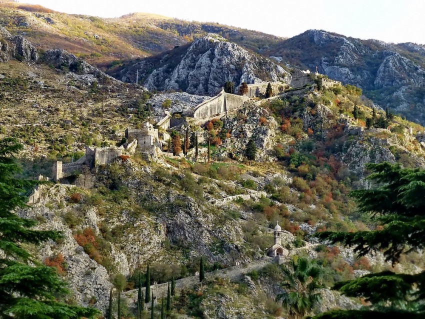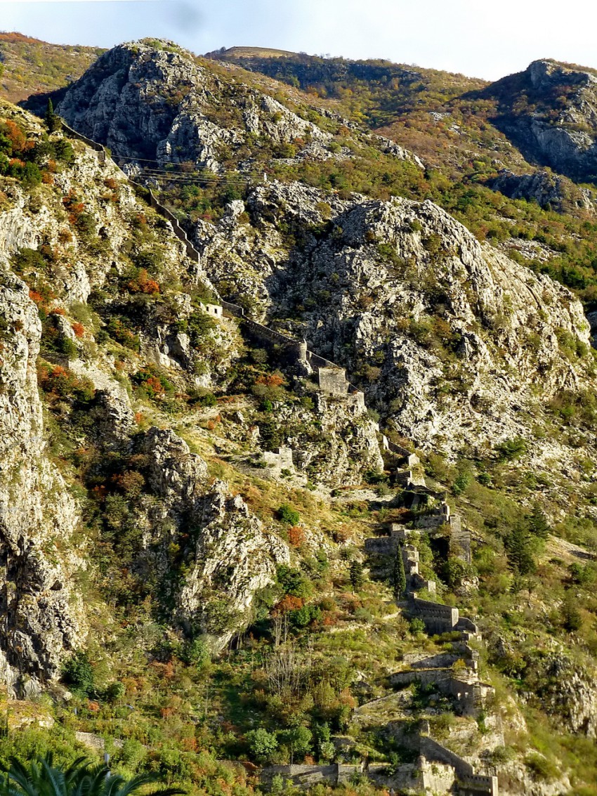 Мощные крепостные стены окружают старый город и поднимаются на каменистый склон горы Шитровник, у подножья которой расположился Котор (о городе см. предыдущий топик здесь).