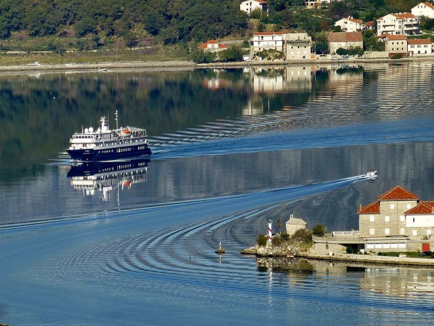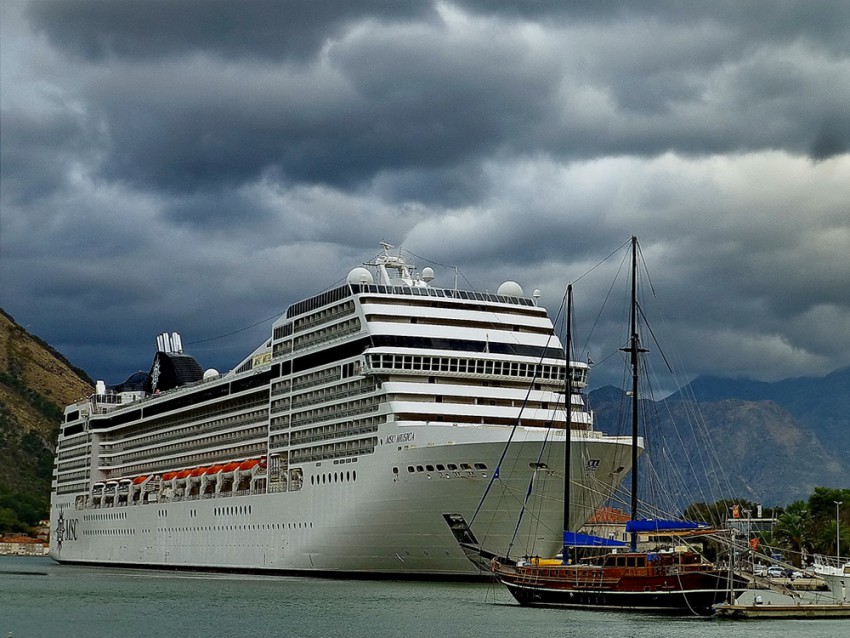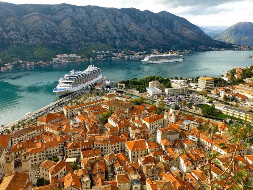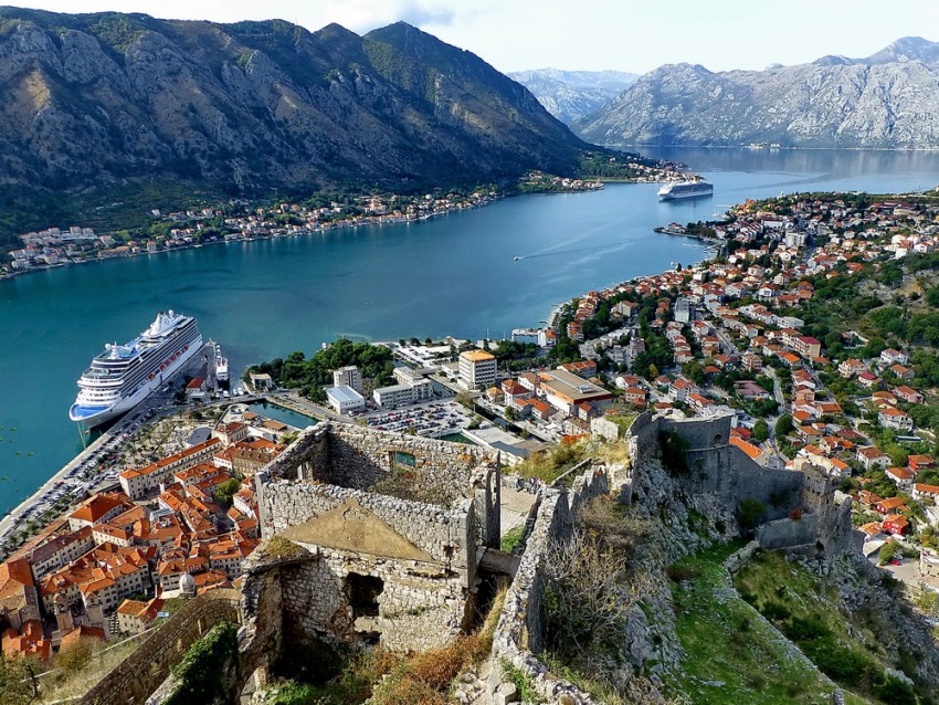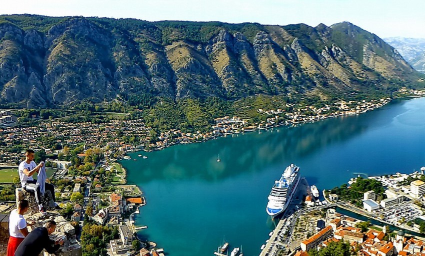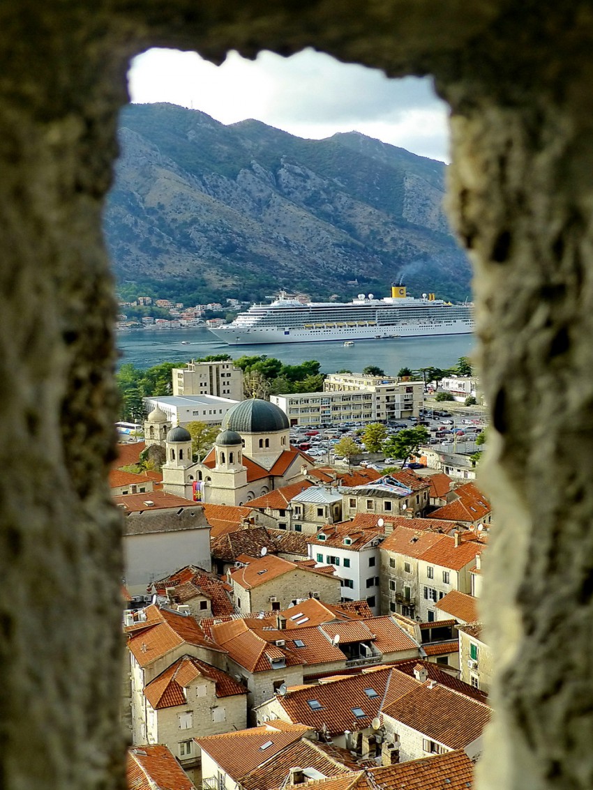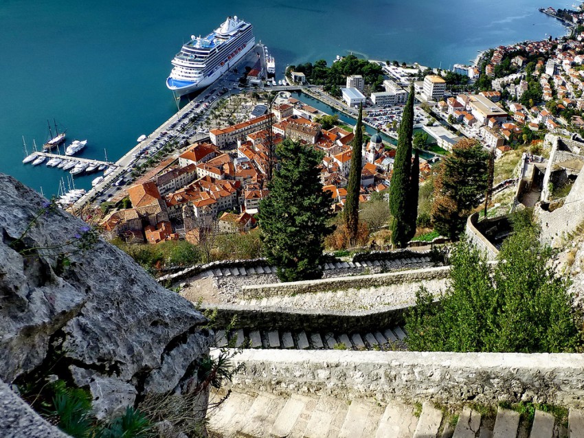 На спуске увидели, что к Котору приближается второй океанский лайнер.