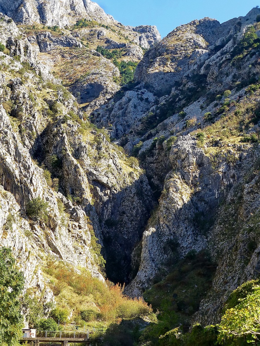 Наш путь лежал вдоль крепостной стены и реки Шкудра. Эта река впадает в Боко-Каторский залив. Её протяженность составляет около двух километров, а ширина порядка 30 метров. На протяжении длительного времени в Средние века эта река вместе с крепостными стенами имела стратегическое значение для защиты и обороны города. В настоящее время — это просто красивый и чистый водоём с водой бирюзового цвета, оттенок которого меняется в зависимости от времени суток.