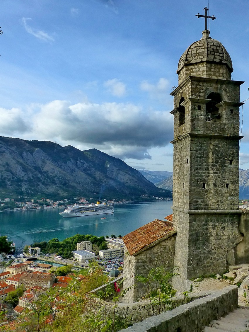 Со смотровой площадки около церкви открывается потрясающая панорама на Котор.