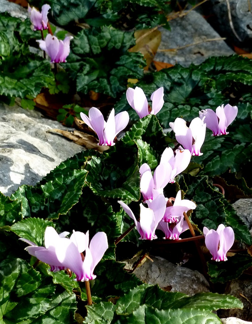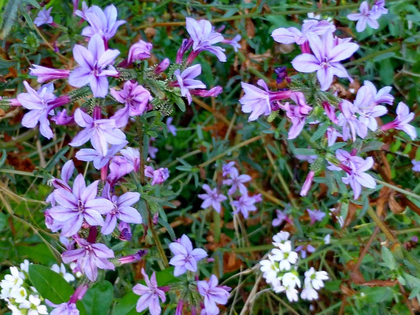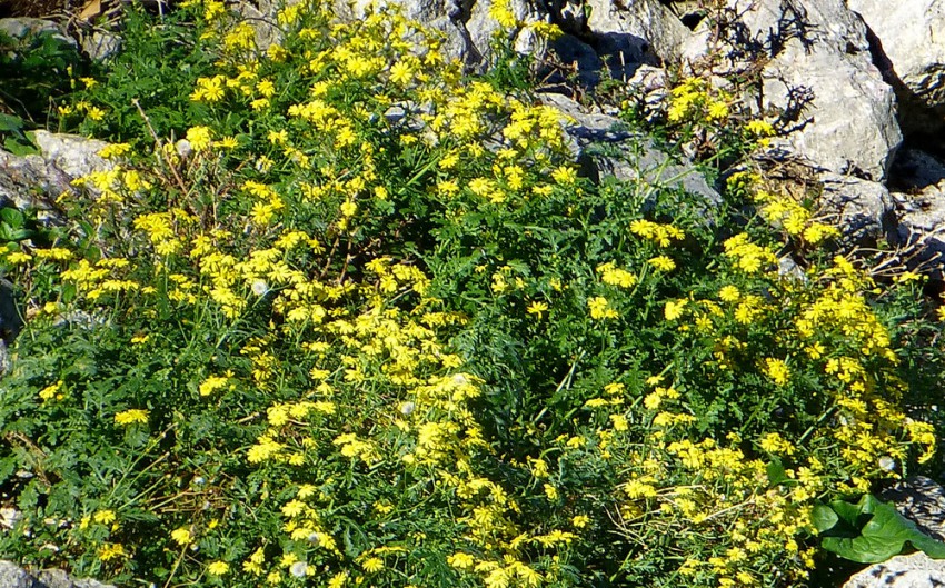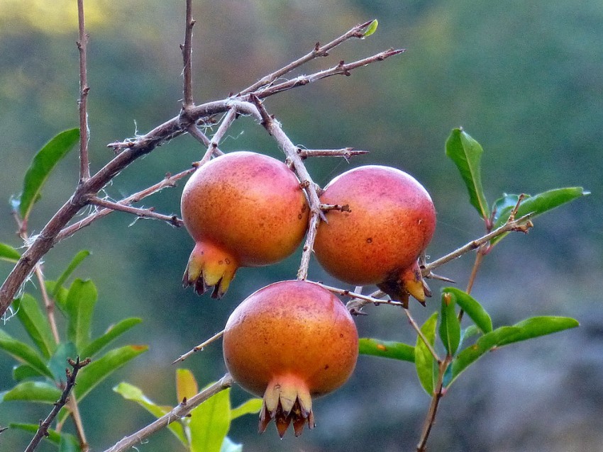 Вдоль дороги растут дикие гранаты и цветут осенние цветы.