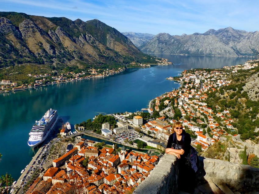 Но это не сложно, так как мы часто останавливаемся и любуемся видами крепости, залива и вершинами гор.