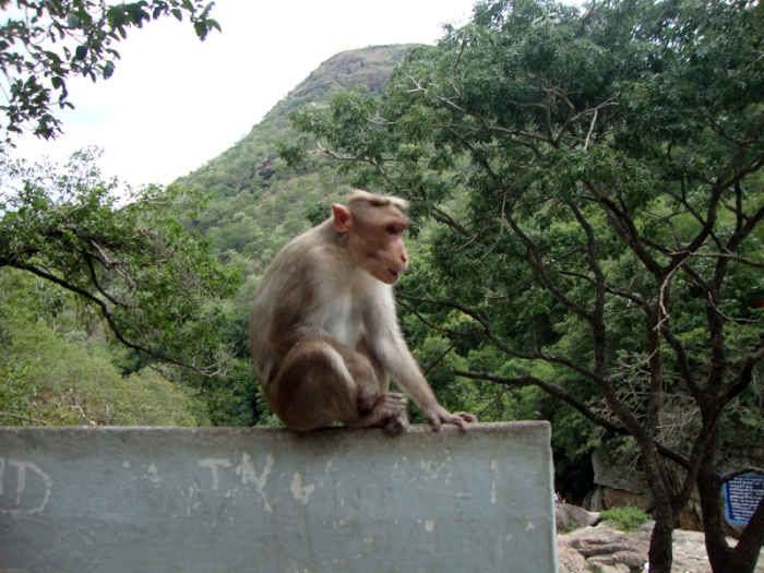 Обезьян много, иногда слишком. Наглые и вредные, но бороться с ними можно. Если в настроении едят с руки, если нет тупо бродят за тобой.