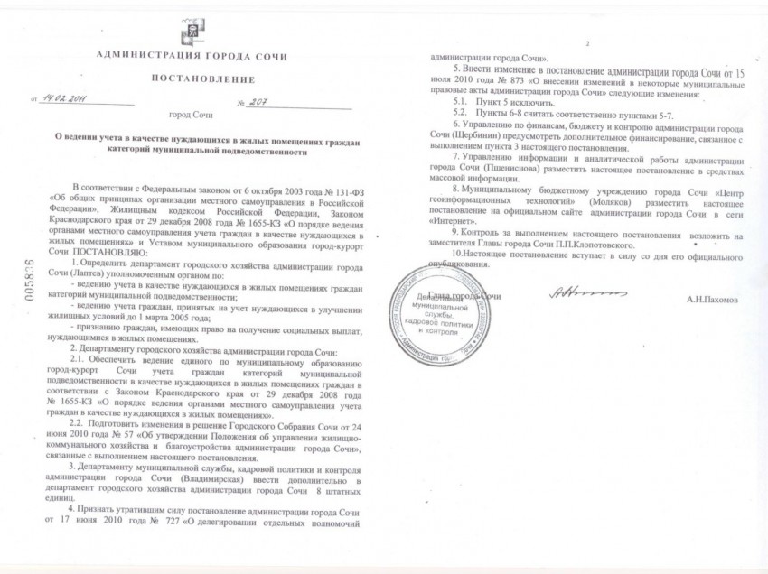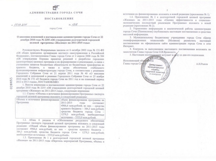Итак, 27 июня 2011года, было подписано распоряжение №220-р «Реализация приоритетных национальных проектов и демографической политики в городе Сочи в 2011году