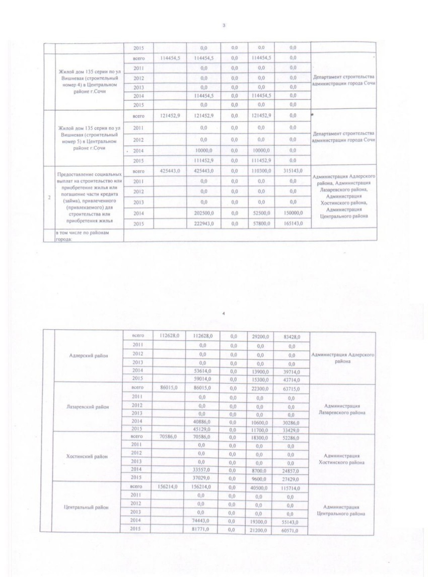 Расчет потребности в финансовых ресурсах из средств городского бюджета на реализацию мероприятия «Предоставление социальных выплат на строительство или приобретение жилья или погашение части кредита (займа), привлеченного (привлекаемого) для строительства или приобретения жилья» производился исходя из количества семей, обратившихся в администрации районов города Сочи за предоставлением социальной выплаты, возможного увеличения такого количества семей, а также среднего размера социальной выплаты за счет бюджета города, который составил 35% от среднерыночной стоимости жилья в соответствующем районе города.