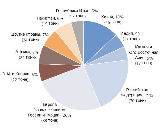 1 место в мире по объёму потребления героина (21% мирового производства)