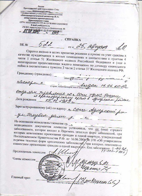 Решением общественной жилищной комиссии при администрации Лазаревского