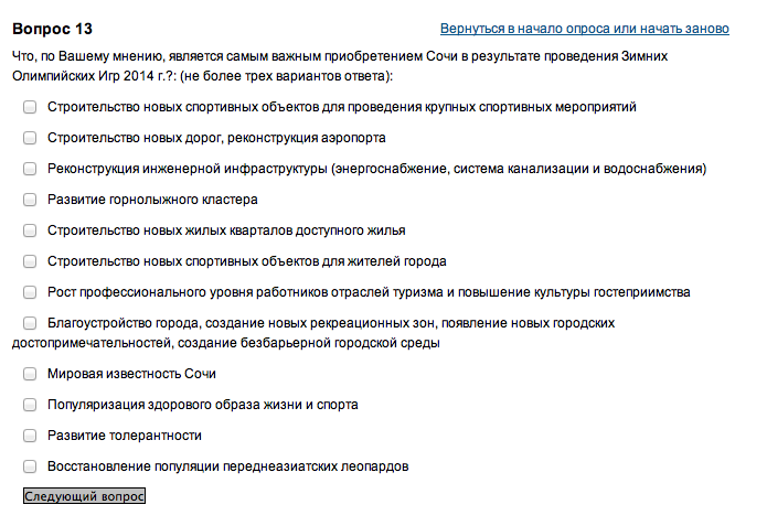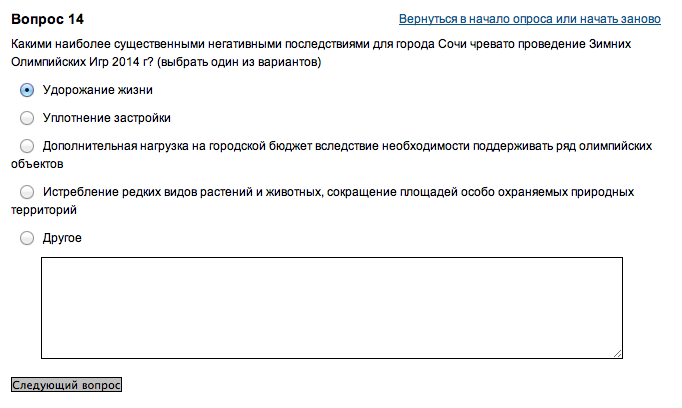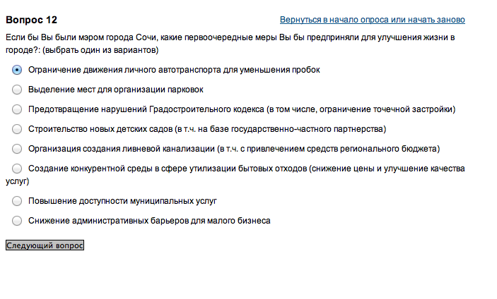 Очень такой интересный опрос - "получить представление об ожиданиях жителей города Сочи"