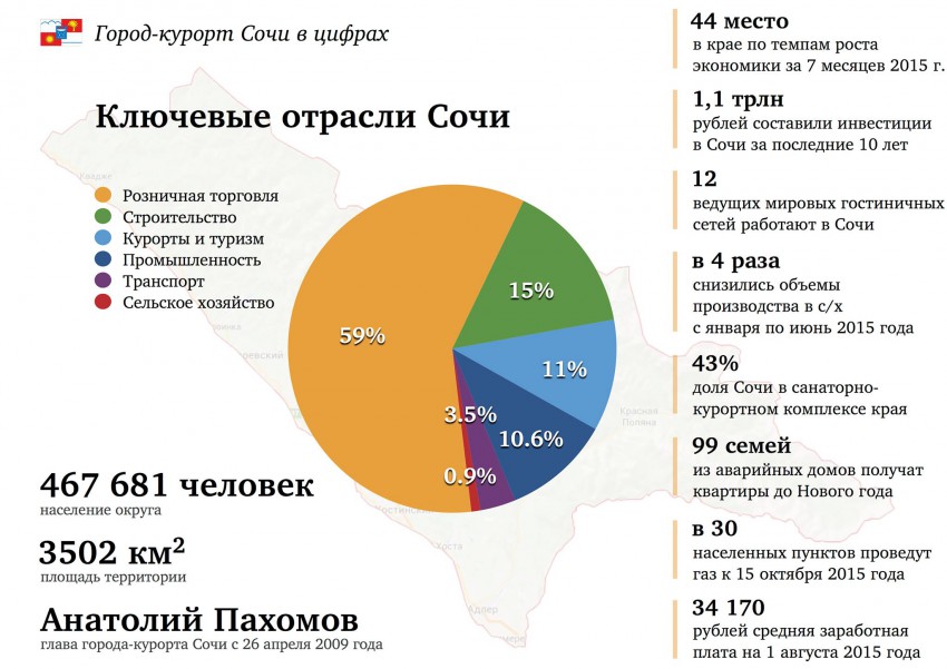 «За большими олимпийскими проектами проблемы простых горожан ушли на второй план, уверен руководитель региона, и эту ситуацию необходимо исправлять. В частности, развивать все отрасли экономики, а не только туризм. Так, сельское хозяйство занимает незначительную долю, на него приходится менее одного процента, а 15-20 лет назад эта цифра была намного больше.