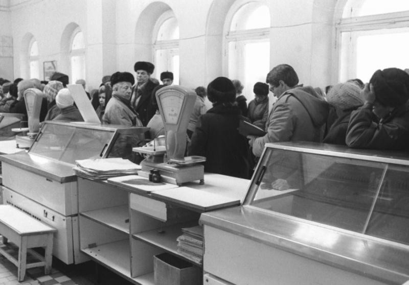 А я жила не только в Сочи… и не только видела эту звенящую торговую пустоту, но и от души настоялась вот в таких бессмысленных «счастливых советских очередях»… за синими курами… за сайгачатиной ещё люди по полдня давились…