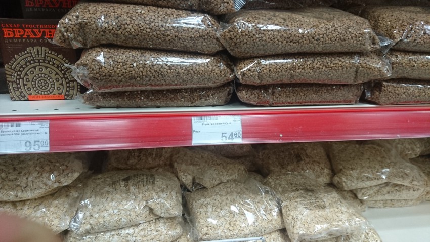 Когда вы определяетесь с крупой (гречка, пшено), вы начинаете выбирать продавца. Одна и та же гречка может стоить по разному из за упаковки, сорта, обработки вы выбираете цену которая вам нравиться.