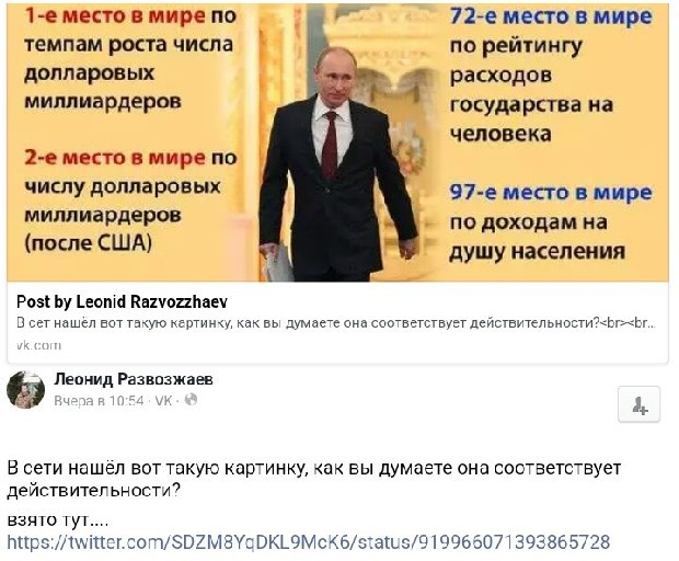 Или же противопоставит мостам и чемпионатам создание дорог в России и поддержку малого и среднего, реальную?