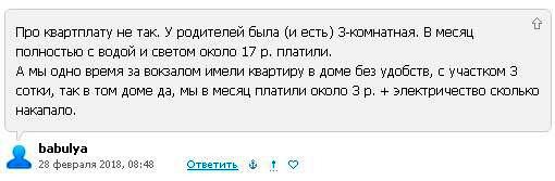 А мы одно время за вокзалом имели квартиру в доме без удобств, с участком 3 сотки, так в том доме да, мы в месяц платили около 3 р. + электричество сколько накапало.