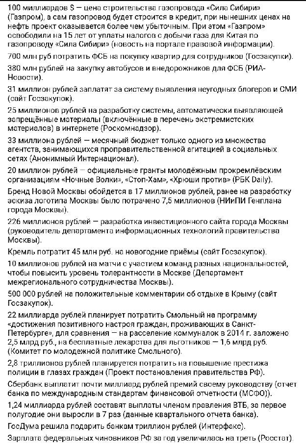 и на этом фоне ежемесячные расходы ПФ РФ на выплаты пенсий кажутся исчезающе малой величиной — какие-то жалкие 10 % ВВП страны, и какие-то мелкие 700 миллиардов рублей (11 миллиардов долларов) ежемесячно. или 8,5 триллионов рублей (140 миллиардов долларов) в год.